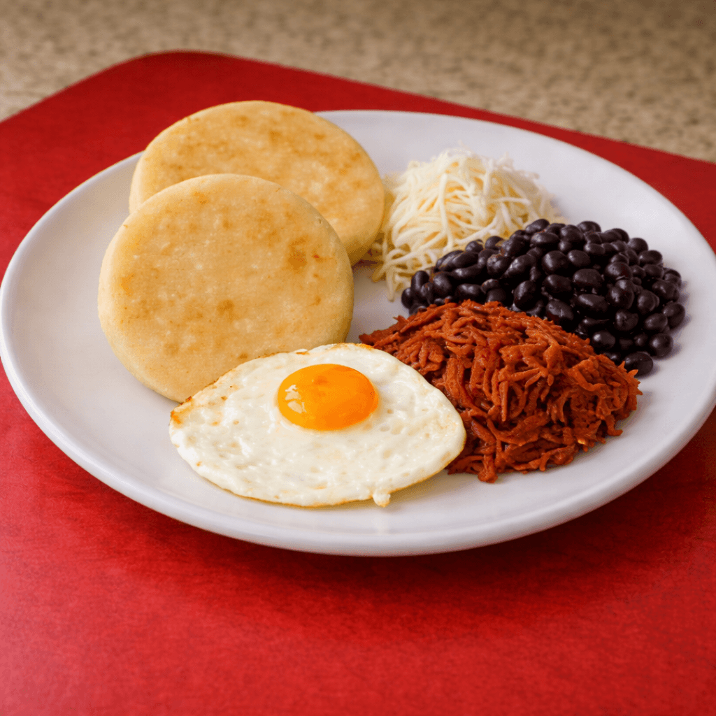 Un clásico completo para empezar el día: acompañado de arepa y el auténtico sabor casero venezolano.